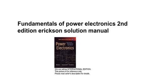 Read FUNDAMENTALS OF POWER ELECTRONICS ERICKSON SOLUTION MANUAL Hardcover Open Library